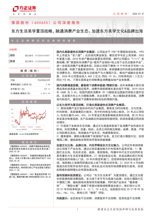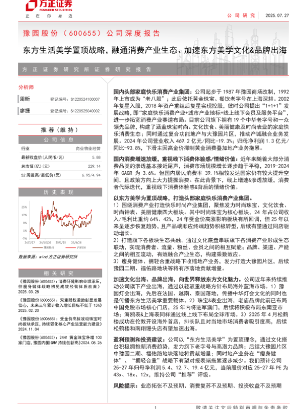 【方正证券】【202507】豫园股份(600655)公司深度报告:东方生活美学置顶战略,融通消费产业生态、加速东方美学文化&品牌出海-35页