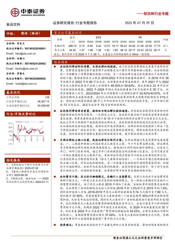 【中泰证券】【202507】软饮料行业专题:头部品牌加码冰柜陈列,提前布局形成渠道壁垒-10页