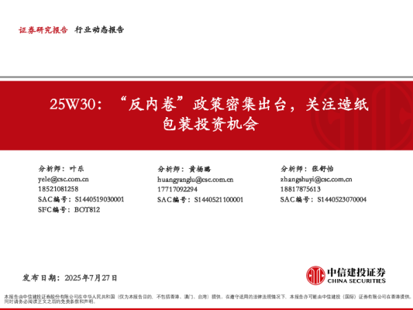 【中信建投证券】【202507】25W30:“反内卷”政策密集出台,关注造纸包装投资机会-49页