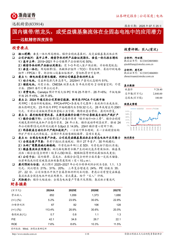 【浙商证券】【202507】国内镍带/箔龙头,或受益镍基集流体在全固态电池中的应用潜力-18页
