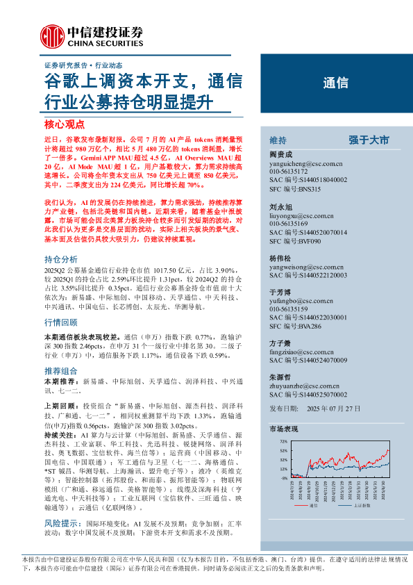 【中信建投证券】【202507】谷歌上调资本开支,通信行业公募持仓明显提升-12页