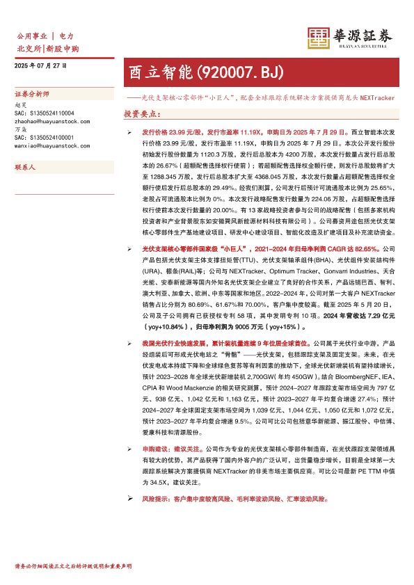 【华源证券】【202507】酉立智能(920007.BJ)——光伏支架核心零部件“小巨人”,配套全球跟踪系统解决方案提供商龙头 NEXTracker-14页