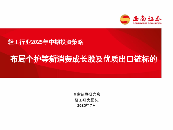 【西南证券】【202507】轻工行业2025年中期投资策略:布局个护等新消费成长股及优质出口链标的-56页