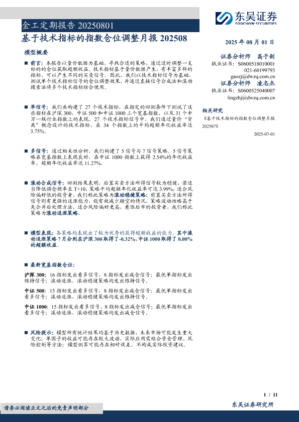 【东吴证券】【202508】金工定期报告:基于技术指标的指数仓位调整月报202508-11页