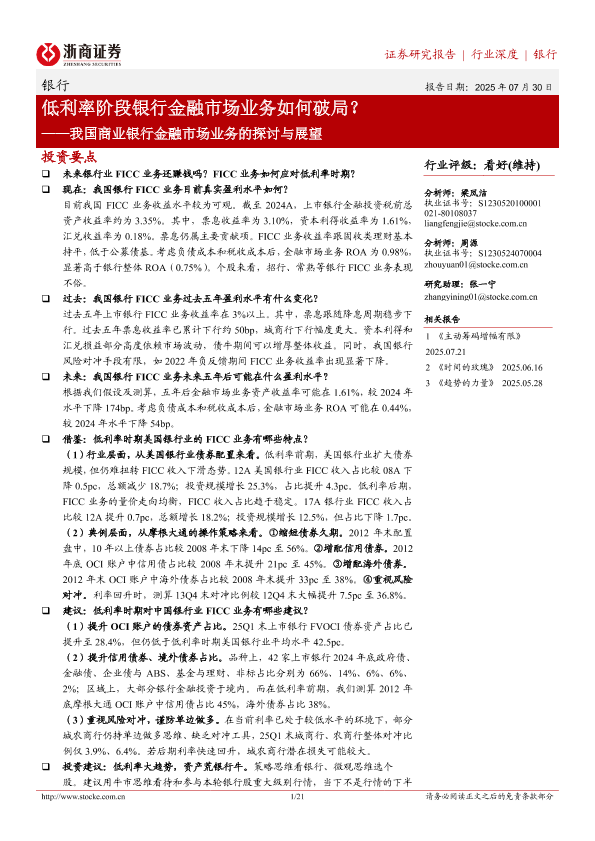 【浙商证券】【202507】低利率阶段银行金融市场业务如何破局?——我国商业银行金融市场业务的探讨与展望-21页