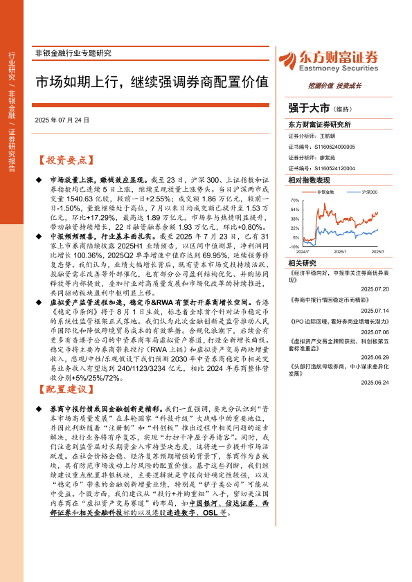 【东方财富证券】【202507】非银金融行业专题研究:市场如期上行,继续强调券商配置价值-10页