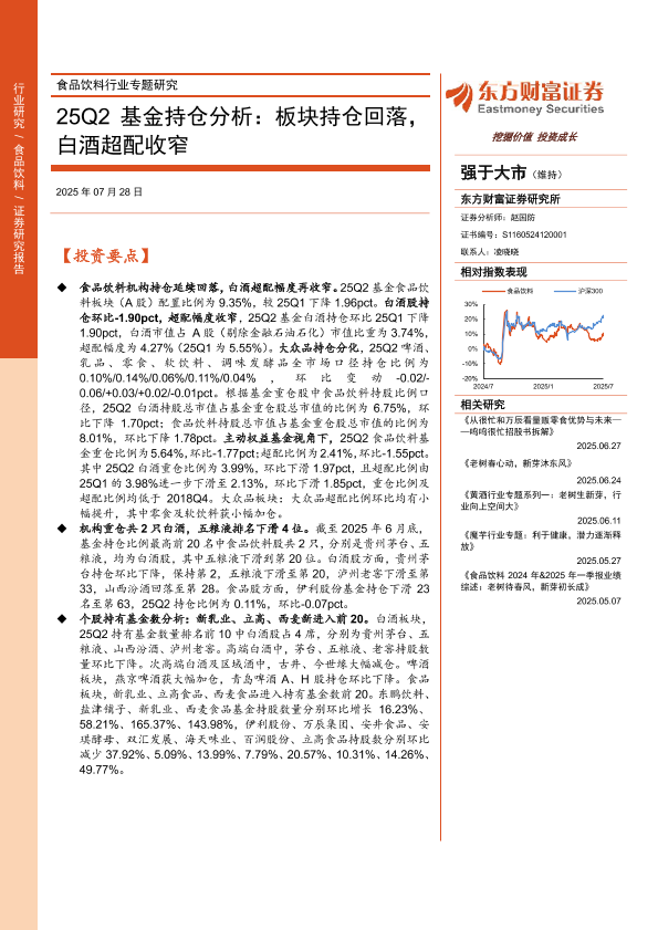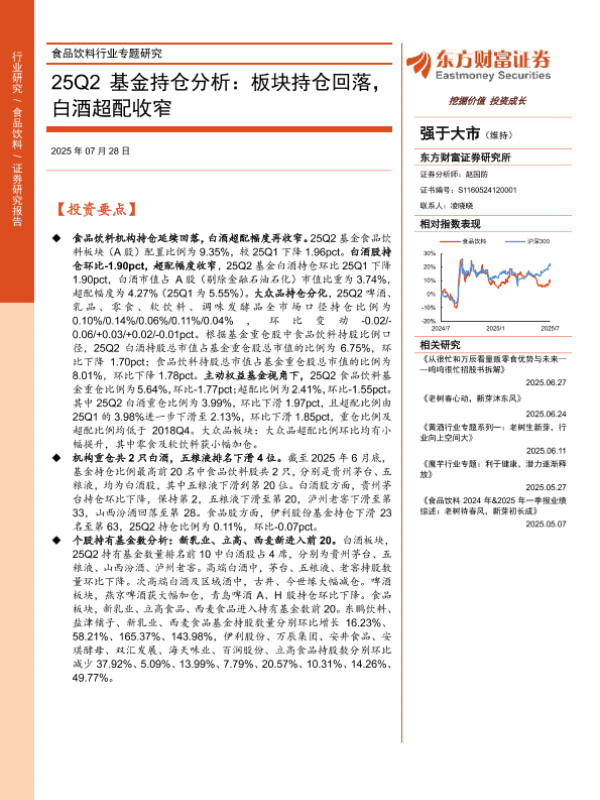 【东方财富证券】【202507】食品饮料行业专题研究-25Q2基金持仓分析:板块持仓回落,白酒超配收窄-12页