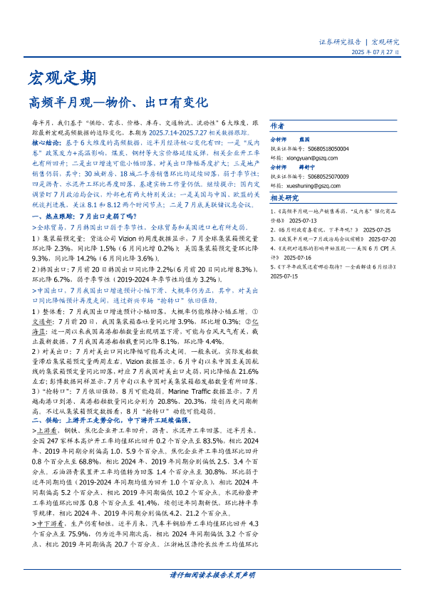【国盛证券】【202507】高频半月观:物价、出口有变化-19页
