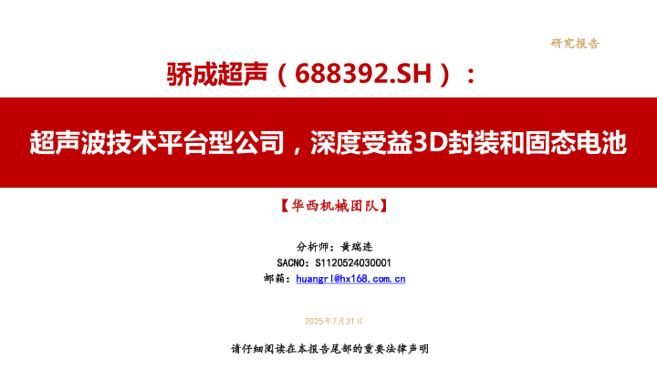 【华西证券】【202507】骄成超声(688392):超声波技术平台型公司,深度受益3D封装和固态电池-59页