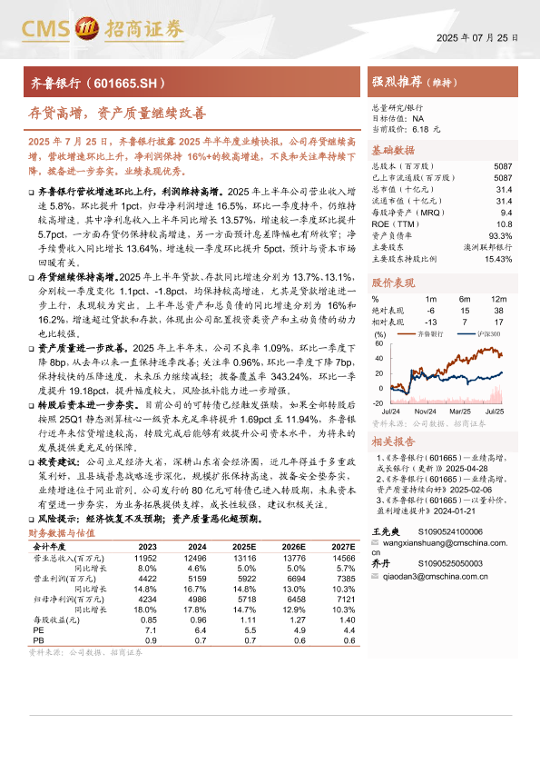 【海通证券】【202507】齐鲁银行存贷高增,资产质量继续改善-11页