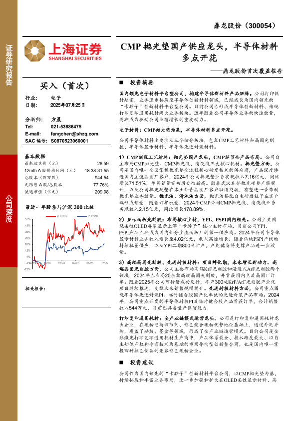 【上海证券】【202507】CMP抛光垫国产供应龙头,半导体材料多点开花-28页