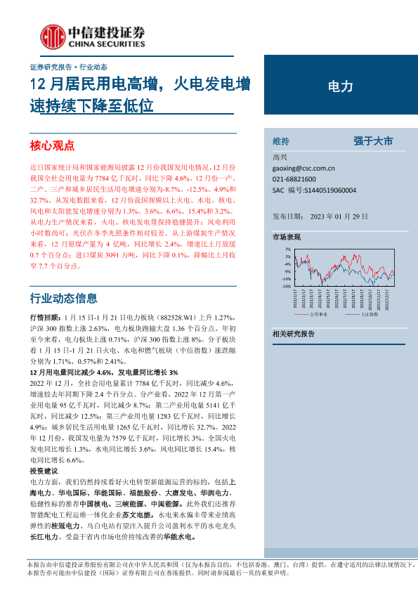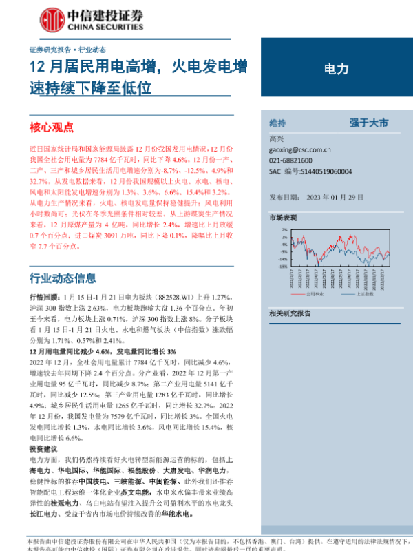【中信建投证券】【20230129】电力行业:12月居民用电高增,火电发电增速持续下降至低位-22页