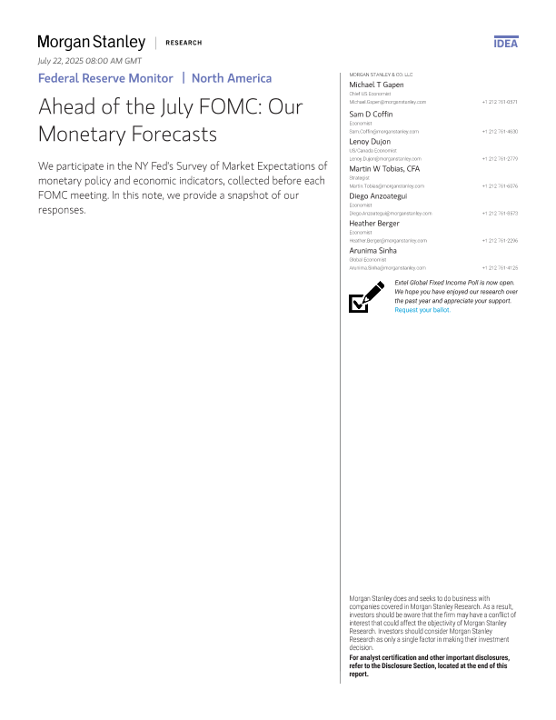 【Morgan Stanley】【2025】Federal Reserve MonitorNorth America Ahead of the July FOMC Our Monetary Forecasts-12页