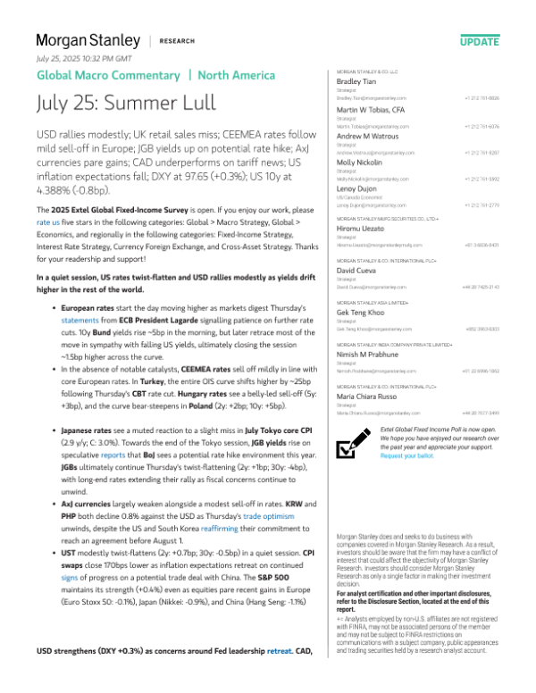 【Morgan Stanley】【202407】Global Macro Commentary|North America July 25 Summer Lull-13页