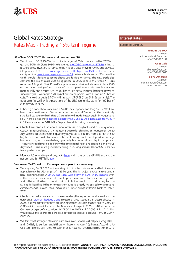 【UBS AG】【202507】Global Rates Strategy Rates Map-Trading a 15% tariff regime-10页