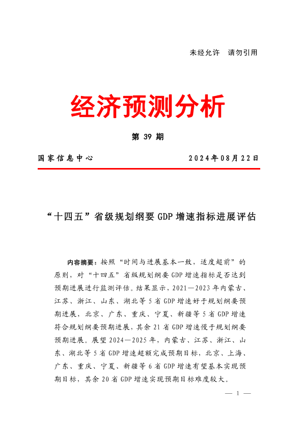 【国家信息中心】【202408】“十四五”省级规划纲要 GDP增速指标进展评估-6页