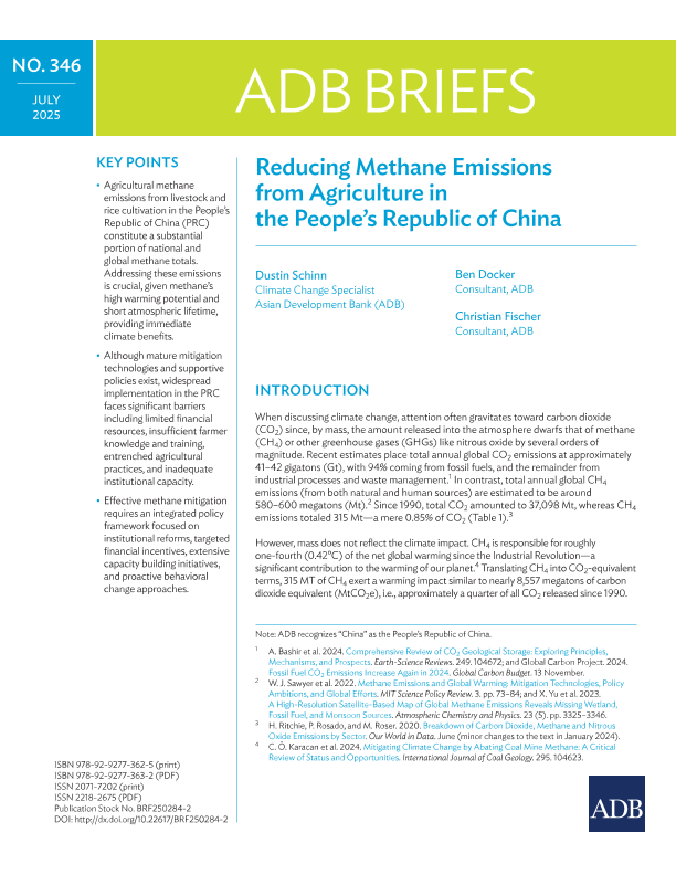 【Asian Development Bank】【2025】Reducing Methane Emissions from Agriculture in the People’s Republic of China-10页
