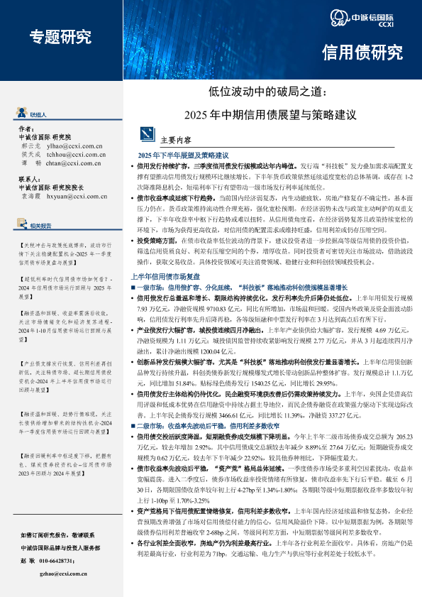 【中诚信国际】【2022】低位波动中的破局之道:2025年中期信用债展望与策略建议-17页