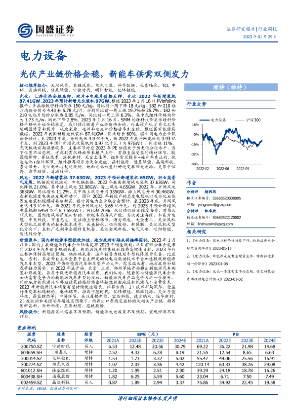 【国盛证券】【20230129】电力设备行业周报:光伏产业链价格企稳,新能车供需双侧发力-17页