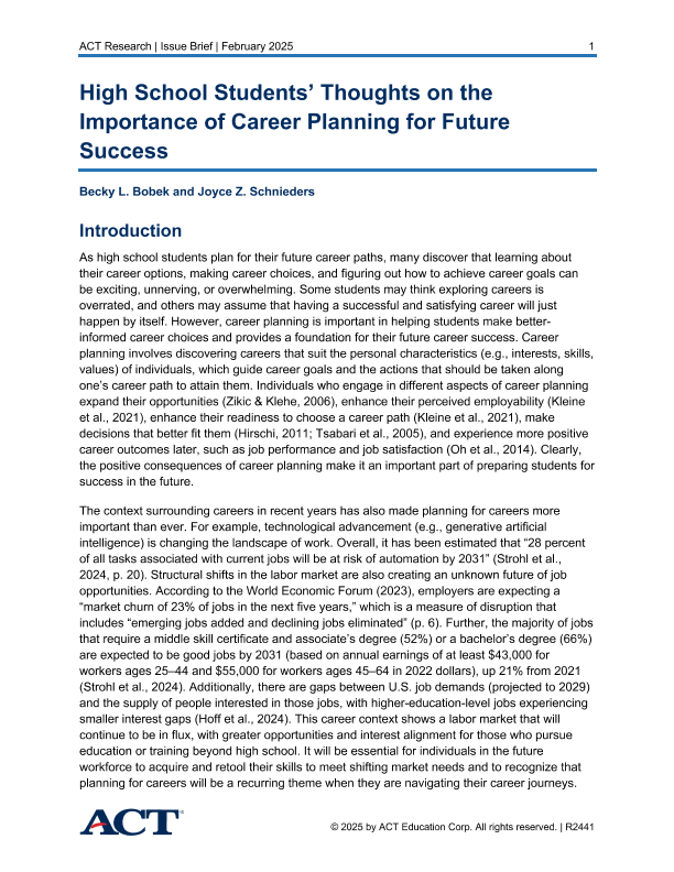 【ACT】【2024】High School Students’ Thoughts on the Importance of Career Planning for Future Success-31页