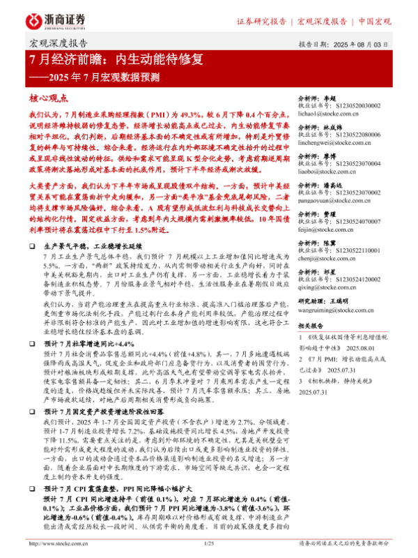 【浙商证券】【202508】7月经济前瞻:内生动能待修复-25页