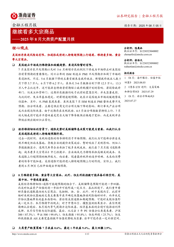 【浙商证券】【202508】继续看多大宗商品——2025年 8月大类资产配置月报-12页