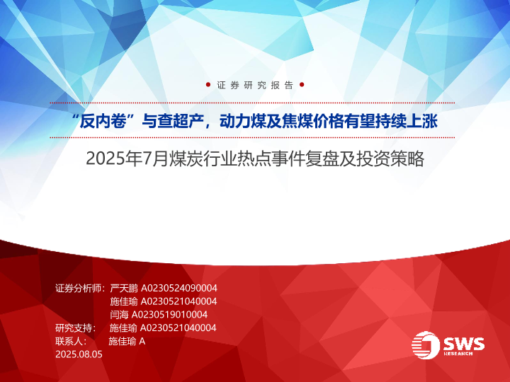 【申万宏源】【202508】2025年7月煤炭行业热点事件复盘及投资策略:“反内卷”与查超产,动力煤及焦煤价格有望持续上涨-39页