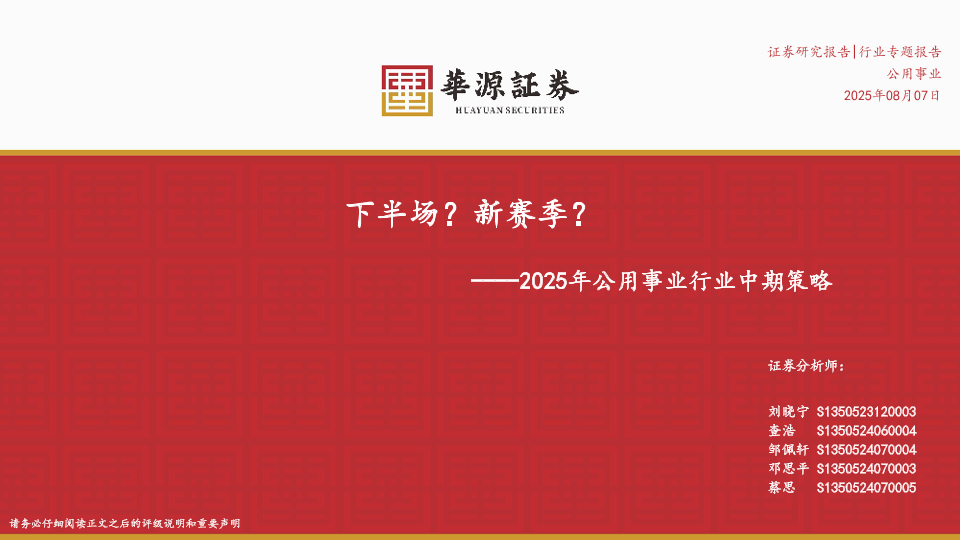 【华源证券】【202508】2025年公用事业行业中期策略:下半场?新赛季?-36页
