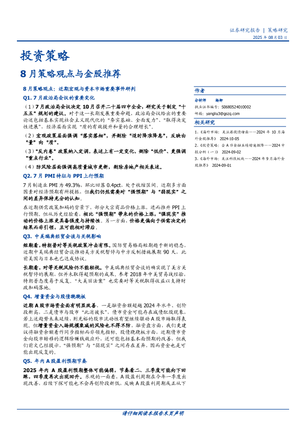 金股推荐 宏观策略 中报业绩 行业研究 政策分析