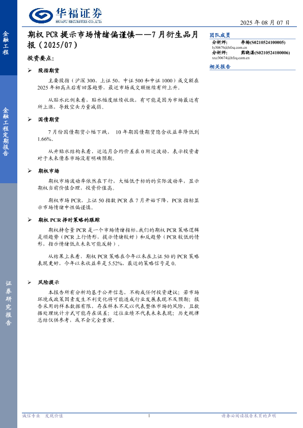【华福证券】【202507】期权 PCR提示市场情绪偏谨慎——7月衍生品月报(2025/07)-16页