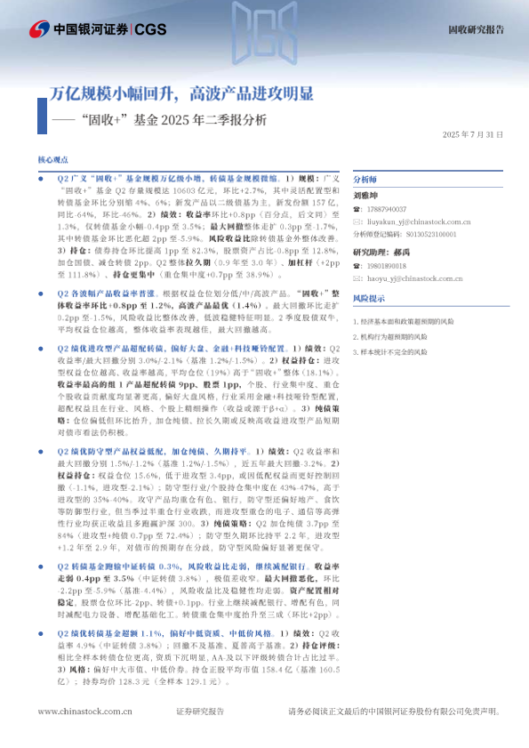 【银河证券】【202507】“固收+”基金2025年二季报分析:万亿规模小幅回升,高波产品进攻明显-23页