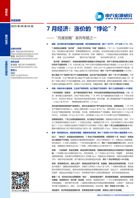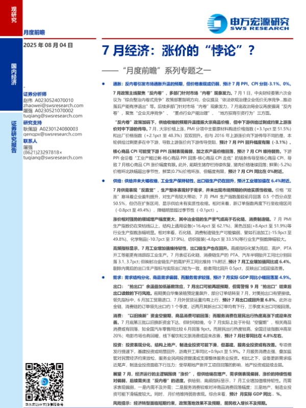 【申万宏源】【202508】7月经济:涨价的“悖论”?-25页