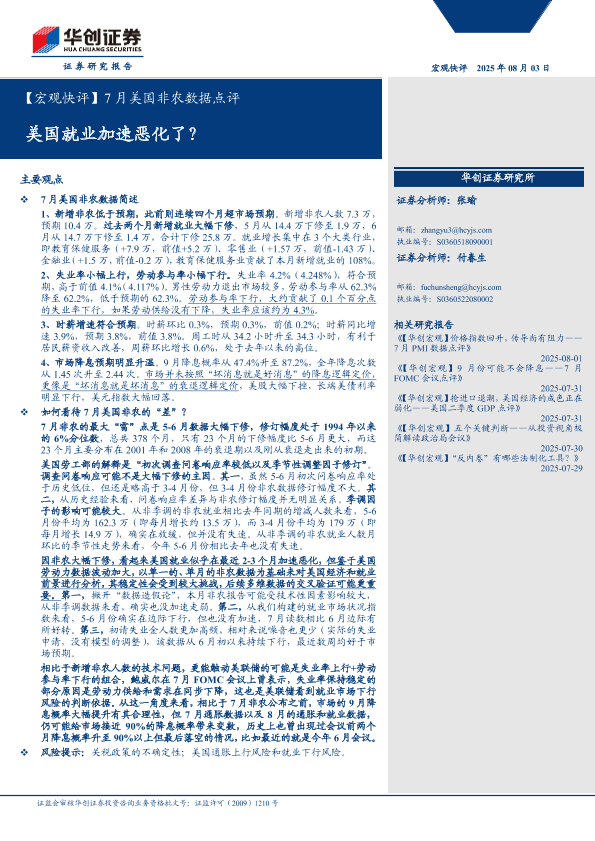 【华创证券】【202408】【宏观快评】7月美国非农数据点评:美国就业加速恶化了?-13页
