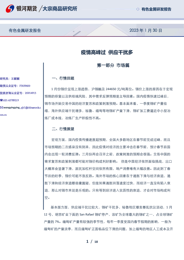 【银河期货】【20230131】疫情高峰过,供应干扰多-18页