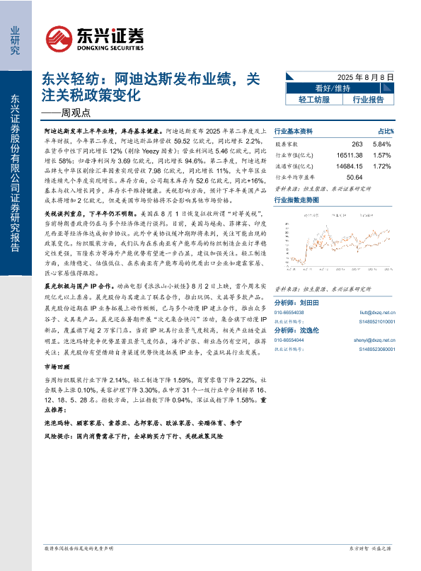 【东兴证券】【202508】东兴轻纺:阿迪达斯发布业绩,关注关税政策变化-10页