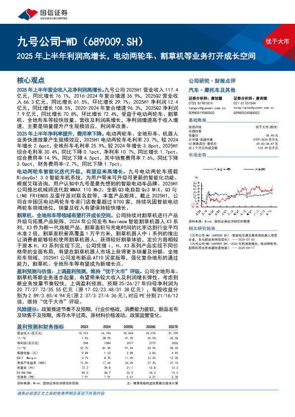【国信证券】【202508】九号公司-WD(689009.SH)2025年上半年利润高增长,电动两轮车、割草机等业务打开成长空间-10页