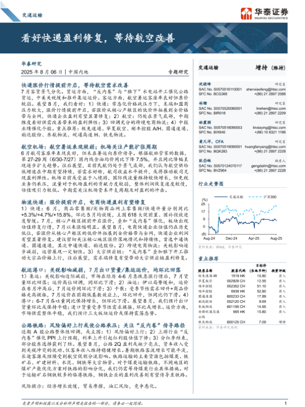 【华泰证券】【202508】交通运输行业:看好快递盈利修复,等待航空改善-26页