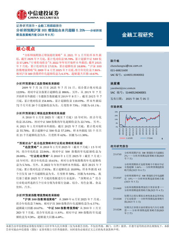 【中信建投证券】【202508】分析师预期沪深300增强组合本月超额0.25%——分析师预期选股策略月报(2025年8月)-18页