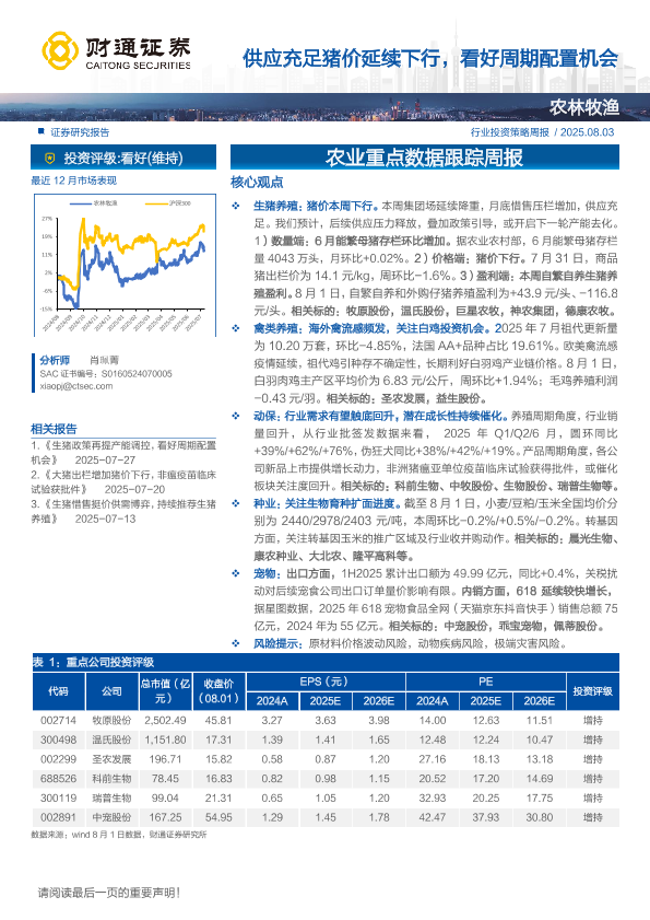 【财通证券】【202508】供应充足猪价延续下行,看好周期配置机会-12页