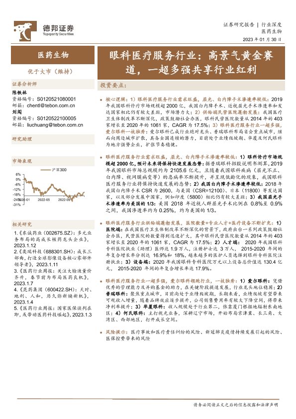 【德邦证券】【20230130】眼科医疗服务行业:高景气黄金赛道,一超多强共享行业红利-27页