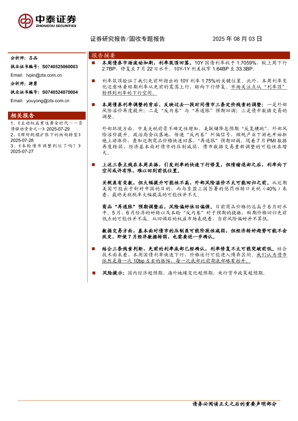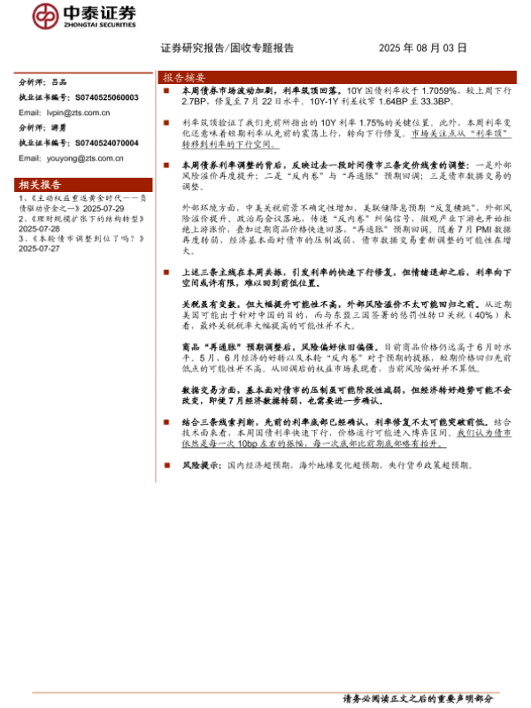 【中泰证券】【202508】利率窄幅修复的三条主线-10页