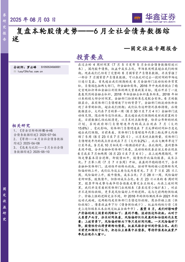 【华鑫证券】【202508】复盘本轮股债走势——6月全社会债务数据综述-16页