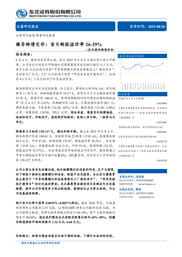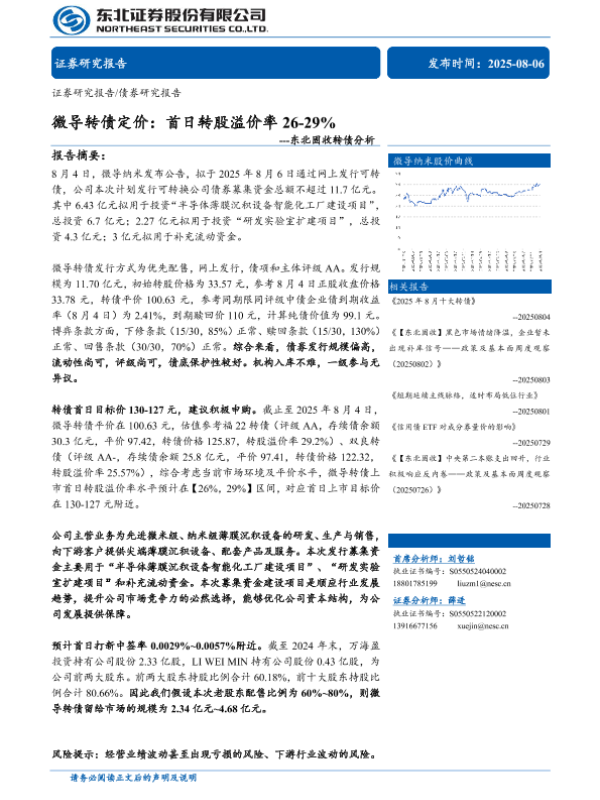 【东北证券】【202508】微导转债定价:首日转股溢价率26-29%-11页