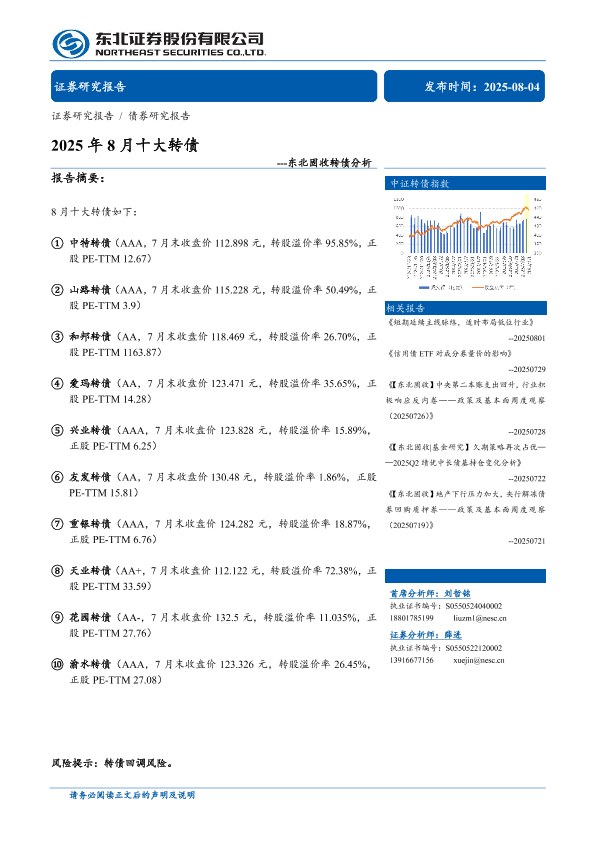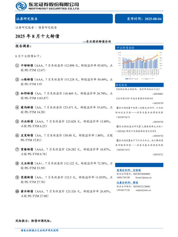【东北证券】【202508】2025年8月十大转债-26页