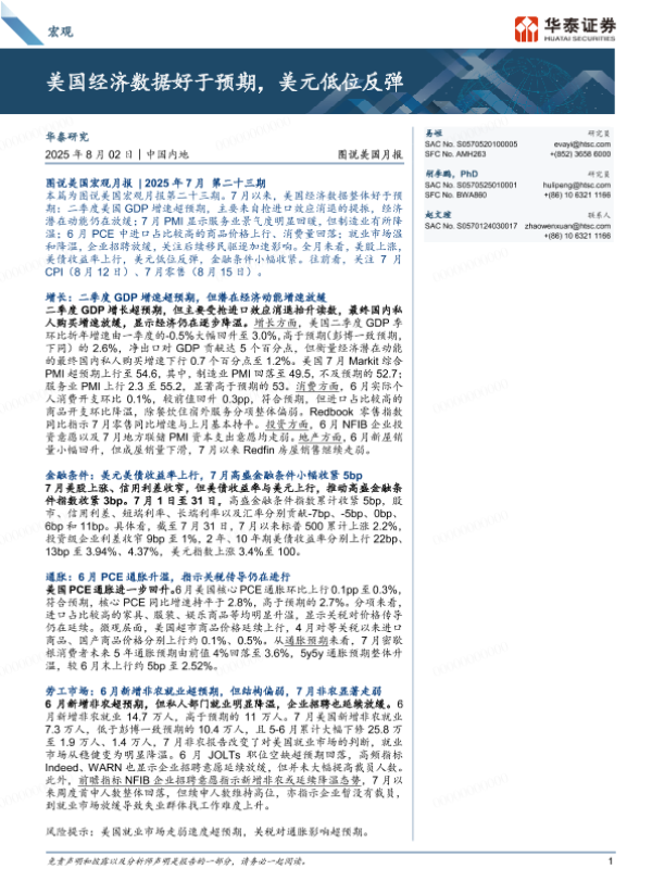 【华泰证券】【202508】图说美国月报:美国经济数据好于预期,美元低位反弹-17页