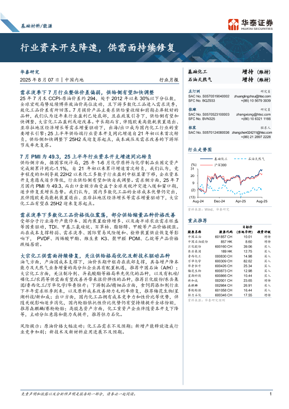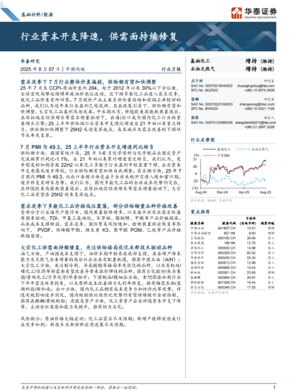 【华泰证券】【202507】基础材料/能源行业月报:行业资本开支降速,供需面持续修复-26页