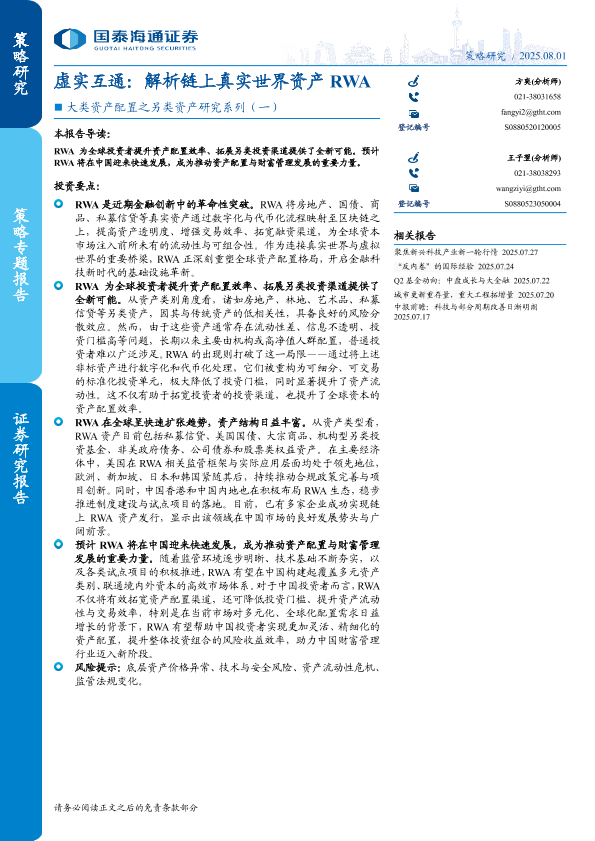 【国泰海通证券】【202507】虚实互通:解析链上真实世界资产 RWA-24页