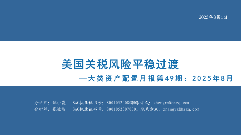 【华安证券】【202508】大类资产配置月报第49期:2025年8月美国关税风险平稳过渡-34页