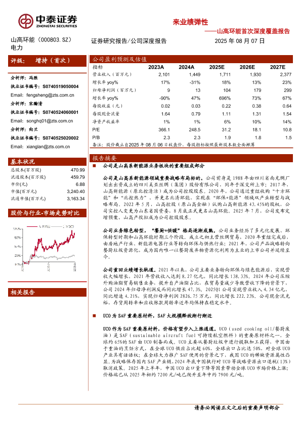 【中泰证券】【202508】山高环能(000803)首次深度覆盖报告:山高系列研究之二——餐厨垃圾处理龙头,SAF需求放量有望带来业绩弹性-21页