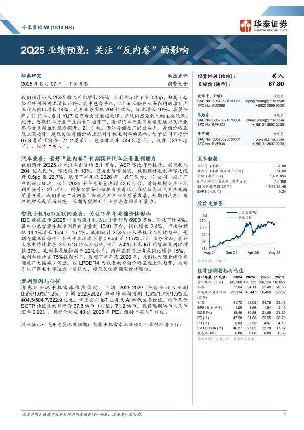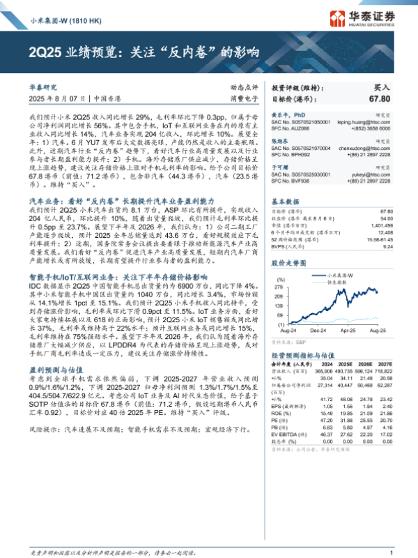 估值分析 汽车业务 智能手机 反内卷 盈利预测